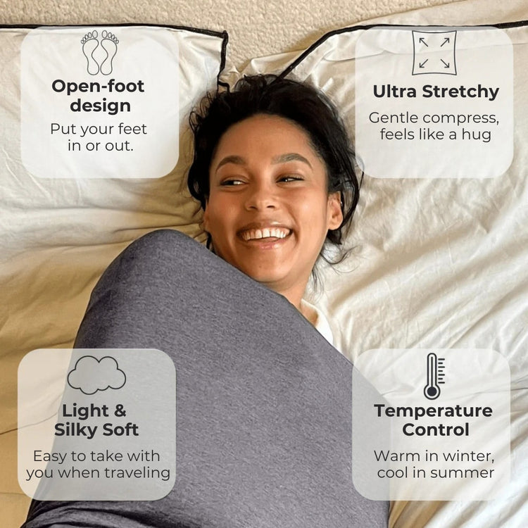 The Sleep Pod uses gentle, stretch-based compression that recreates the soothing feeling of a full-body hug. This calming pressure helps your nervous system slow down, allowing you to fall asleep faster and stay asleep longer. Unlike heavy blankets or complicated sleep aids, it’s soft, breathable, and moves with you, keeping you cool, comforted, and completely at ease all night.