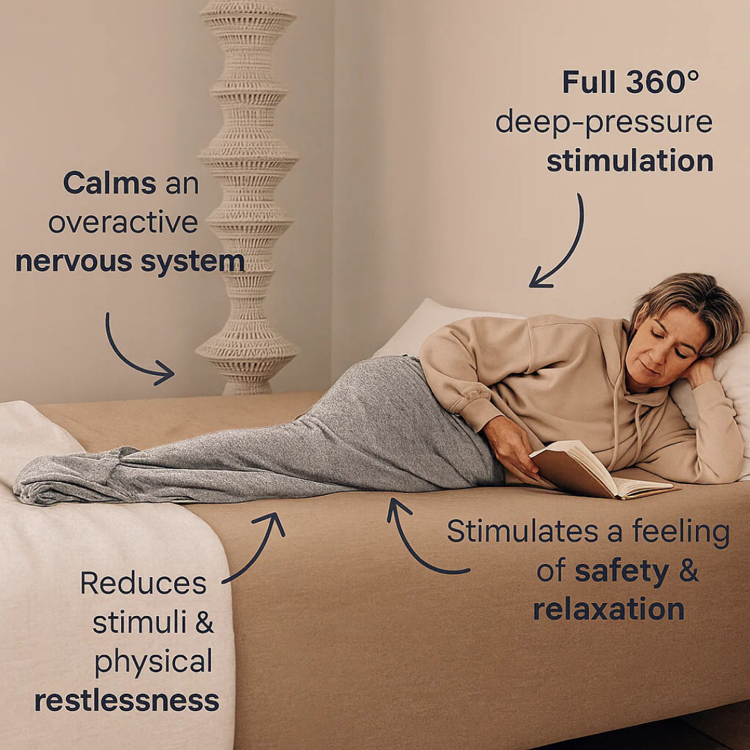 Many customers worry about feeling trapped. The Sleep Pod is designed to feel like a gentle, calming hug not a straitjacket. It’s stretchy, breathable, and gives you just enough pressure without restricting movement.